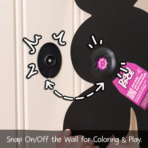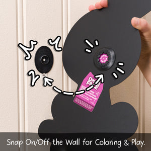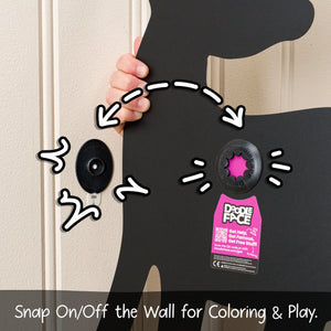 - DoodleFace characters can be easily snapped off the wall for coloring. One side of the snap remains securely attached to the wall with the included Command Strip or your choice of hardware, while the other side is on the back of the DoodleFace character. Once coloring is complete, simply put away the crayons and snap the character back onto the wall to enjoy.