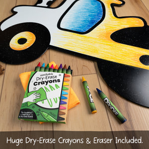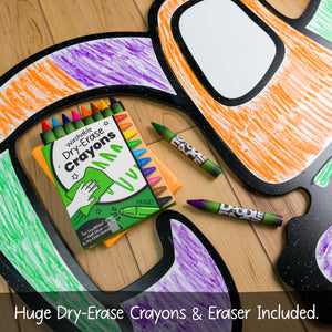 - Color with DoodleFace Wipe-Away Crayons, which stay put and are not messy like markers — no mess, no stress! When it's time for a new look, just wipe the surface with the damp Eraser Cloth and start fresh.