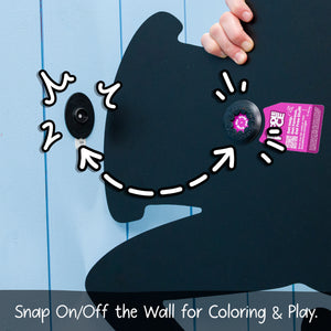 - DoodleFace characters can be easily snapped off the wall for coloring. One side of the snap remains securely attached to the wall with the included Command Strip or your choice of hardware, while the other side is on the back of the DoodleFace character. Once coloring is complete, simply put away the crayons and snap the character back onto the wall to enjoy.
