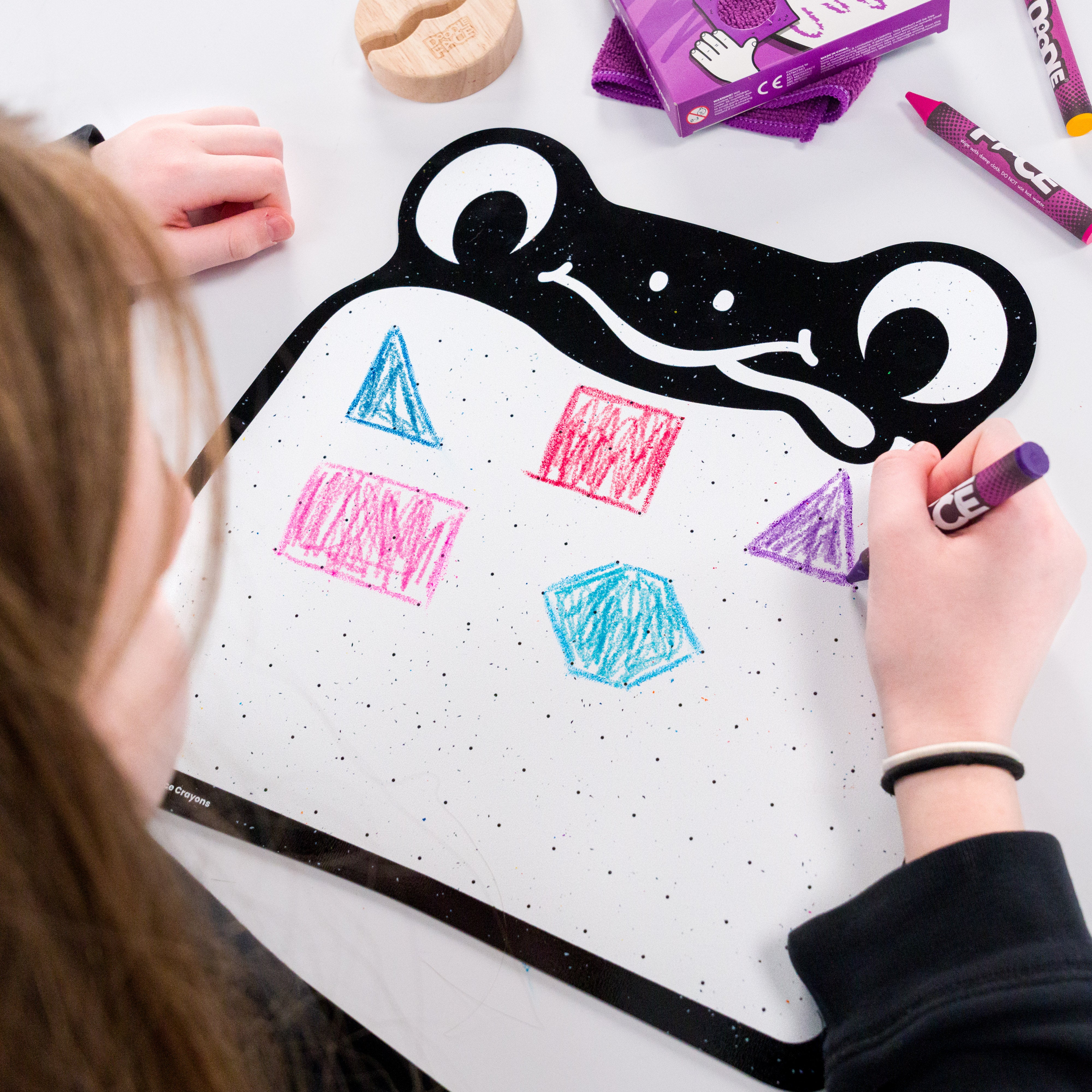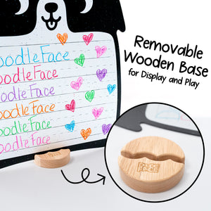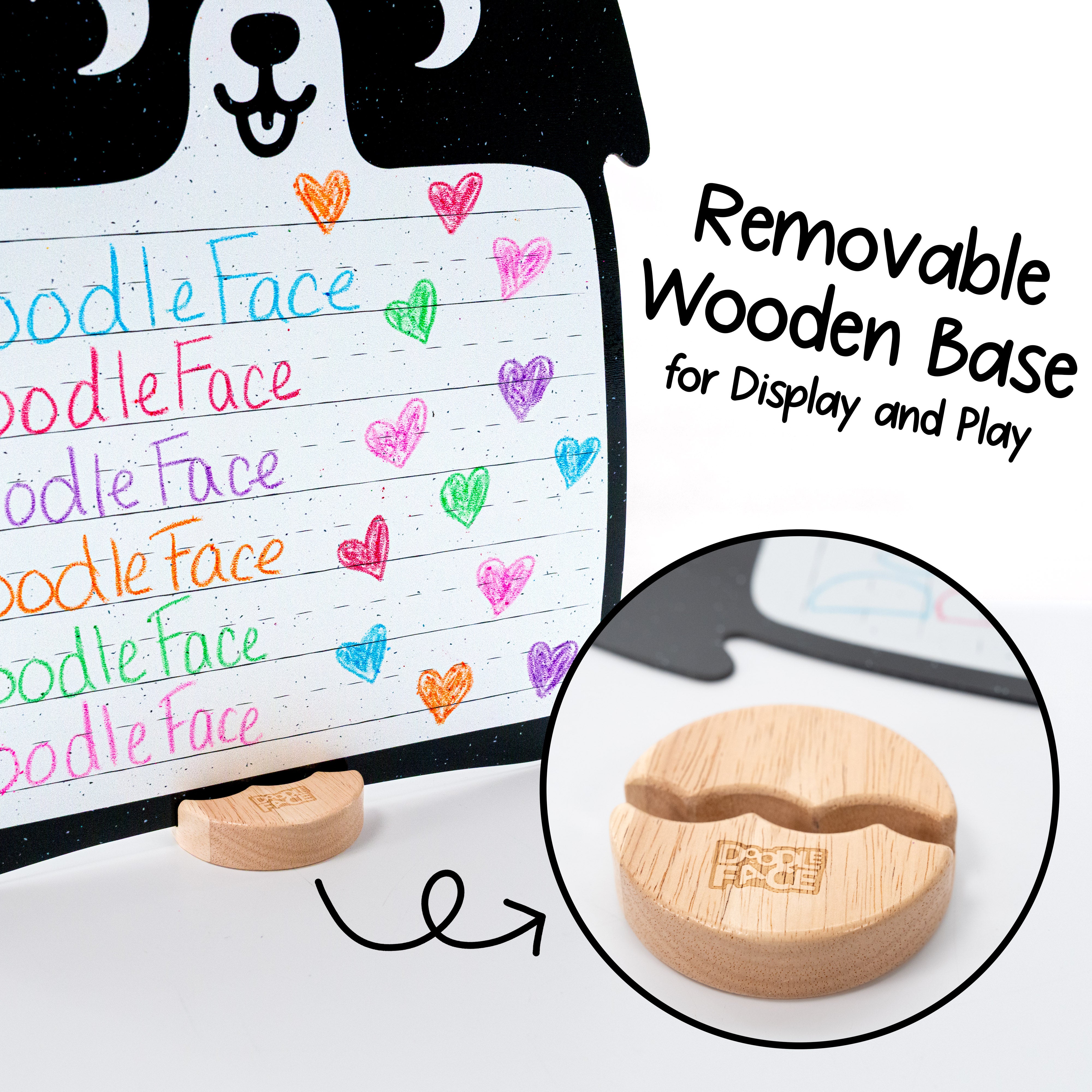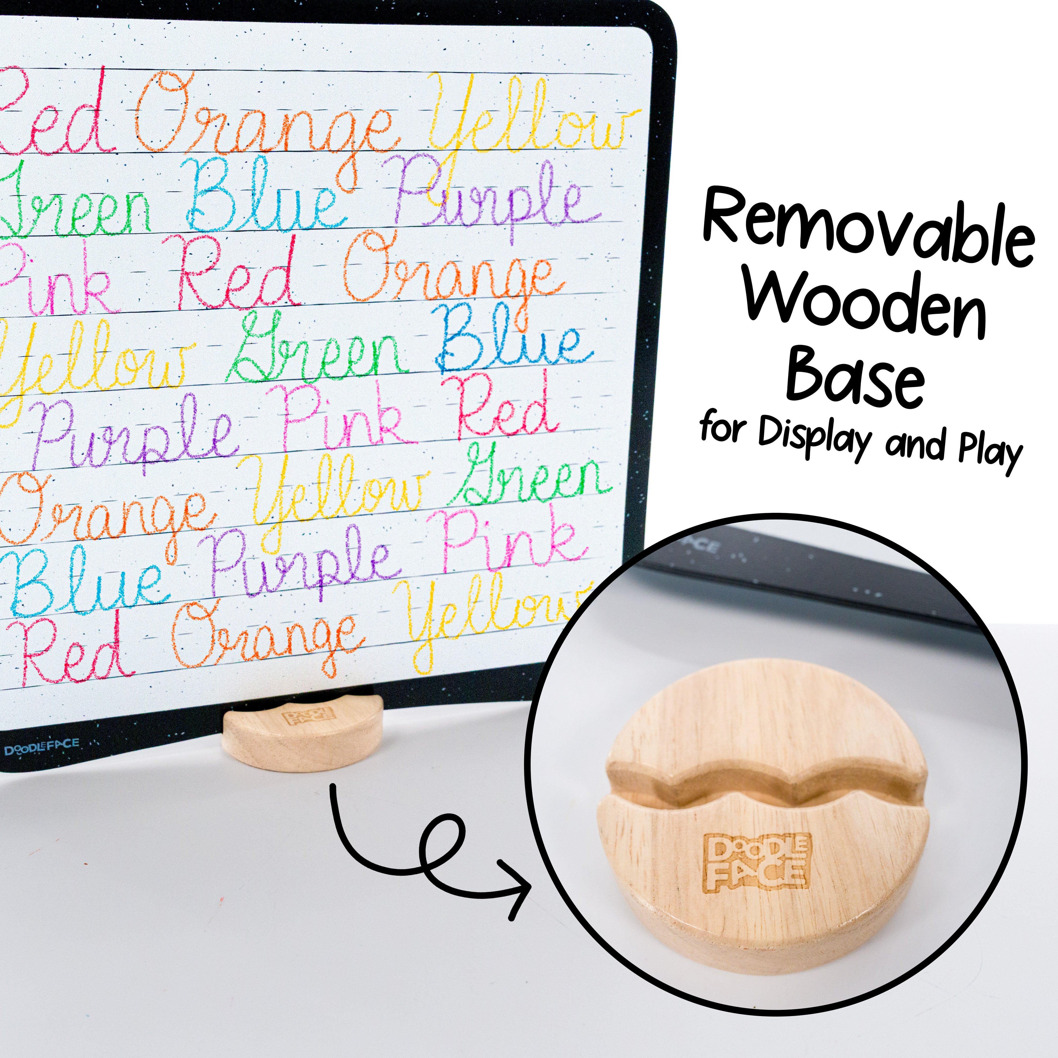 The DoodleFace Wipe-Away Crayon Lapboard is a durable, screen-free, and eco-friendly alternative to dry-erase boards, LCD writing tablets, and electronic drawing toys. Unlike cheap marker boards that stain, crack, or warp, it’s made from premium, non-porous materials that wipe clean every time — built to outlast years of classroom, homeschool, and home use.