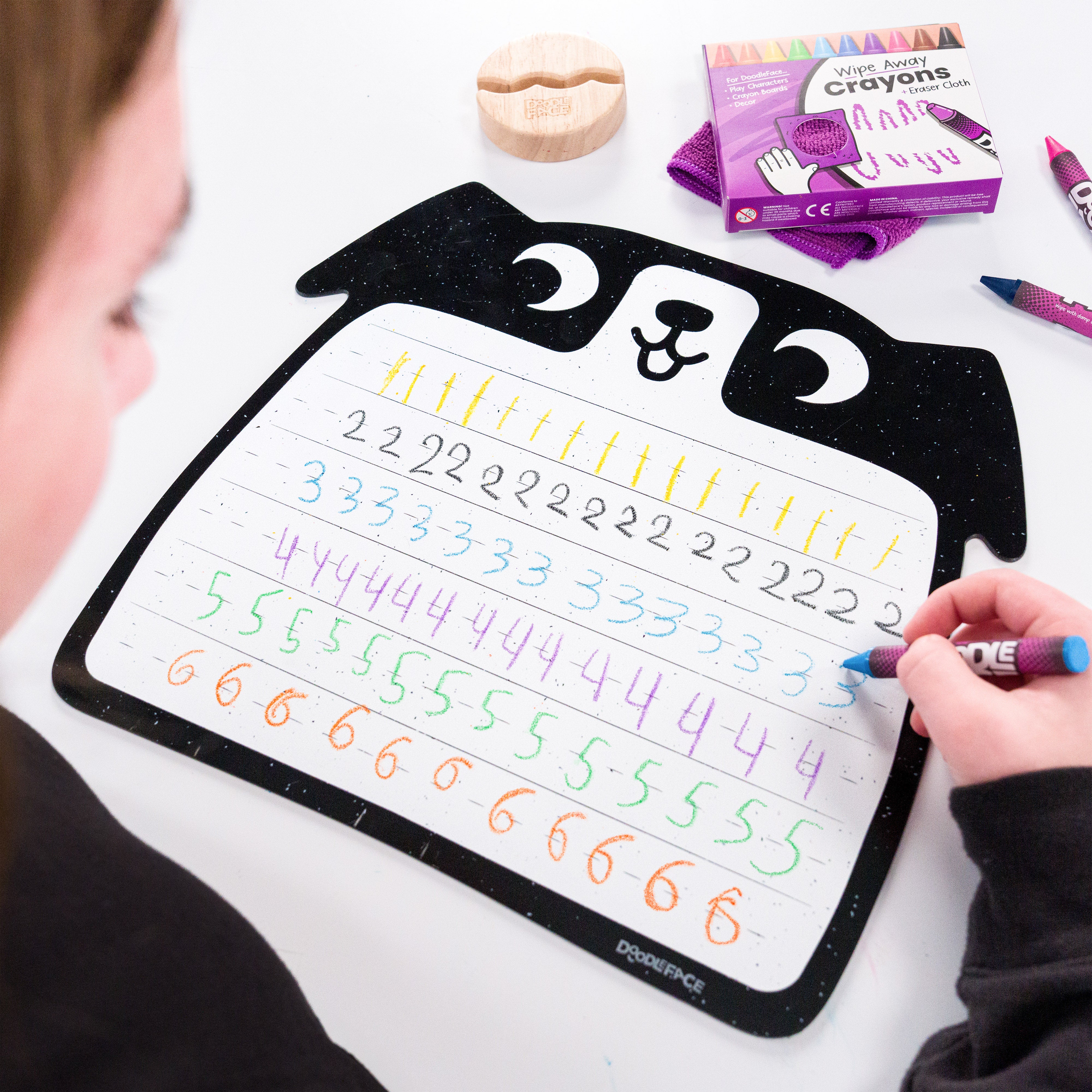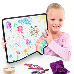 DoodleFace Wipe-Away Crayon Board w/ Crayons. Mess-Free Dry-Erase for Kids Ages 2-8!