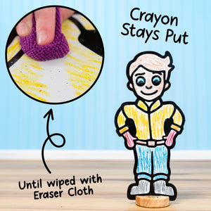 Durable, Sustainable, and Safe. Premium thick materials and solid wooden bases ensure lasting durability, reduced waste, and genuine value. Made from high-quality, child-safe, non-toxic materials for worry-free play. A Montessori-inspired toy that benefits families, classrooms, and the planet. Characters made in the USA; crayons made in China.