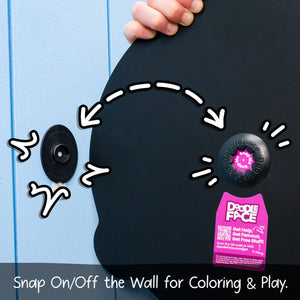 - DoodleFace characters can be easily snapped off the wall for coloring. One side of the snap remains securely attached to the wall with the included Command Strip or your choice of hardware, while the other side is on the back of the DoodleFace character. Once coloring is complete, simply put away the crayons and snap the character back onto the wall to enjoy.