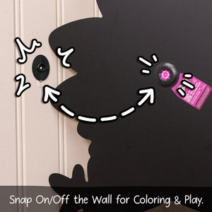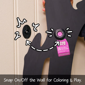 - DoodleFace characters can be easily snapped off the wall for coloring. One side of the snap remains securely attached to the wall with the included Command Strip or your choice of hardware, while the other side is on the back of the DoodleFace character. Once coloring is complete, simply put away the crayons and snap the character back onto the wall to enjoy.