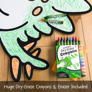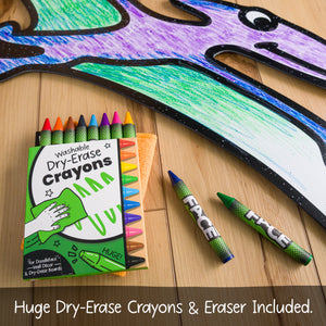 - Color with DoodleFace Wipe-Away Crayons, which stay put and are not messy like markers — no mess, no stress! When it's time for a new look, just wipe the surface with the damp Eraser Cloth and start fresh.