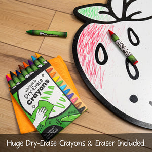 - Color with DoodleFace Wipe-Away Crayons, which stay put and are not messy like markers — no mess, no stress! When it's time for a new look, just wipe the surface with the damp Eraser Cloth and start fresh.