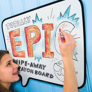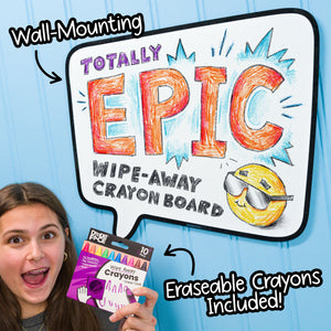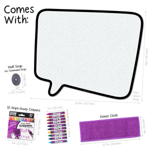 - Ditch the Markers. Grab a Crayon: A speech bubble message board powered by 10 jumbo Wipe-Away Crayons that never dry out. Vibrant color that stays put — no smears, no smudges, no accidental sleeve-wipes. Wipe clean with the included eraser cloth to start fresh.